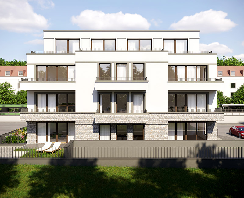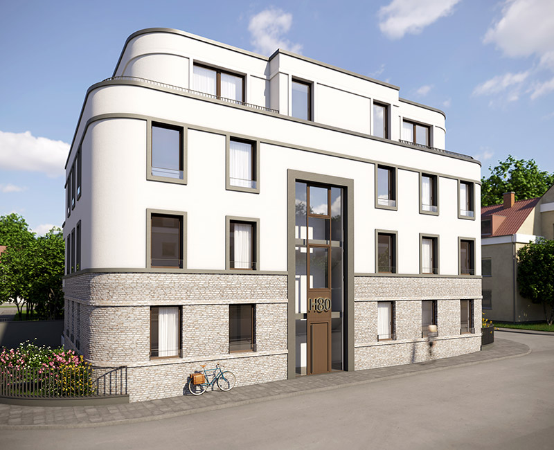 The new building will have three full storeys with three apartments each with 2- to 4-room layouts. The staggered storey accommodates a penthouse with variable floor plan. The apartments are designed in such a way that they offer space for all needs with sizes of approx. 47 qm - approx. 150 qm.